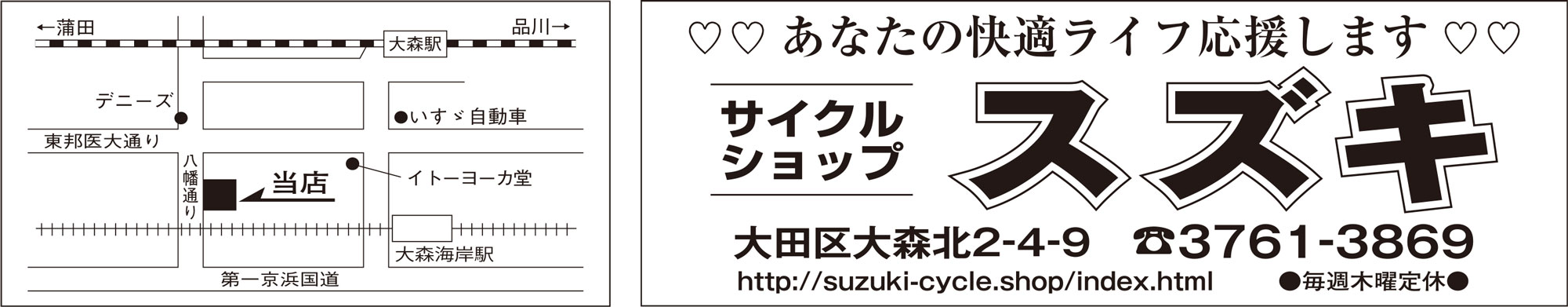 〒143-0016 東京都太田区大森北2-4-9 TEL.03-3761-3869 FAX.03-3761-7144 info@suzuki-cycle.shop